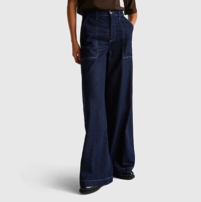 The most comfortable jeans in the wardrobe? Wide ones! With rips on the knees, high-waisted, with turn-ups: don't miss all the models in the Women's Collection.